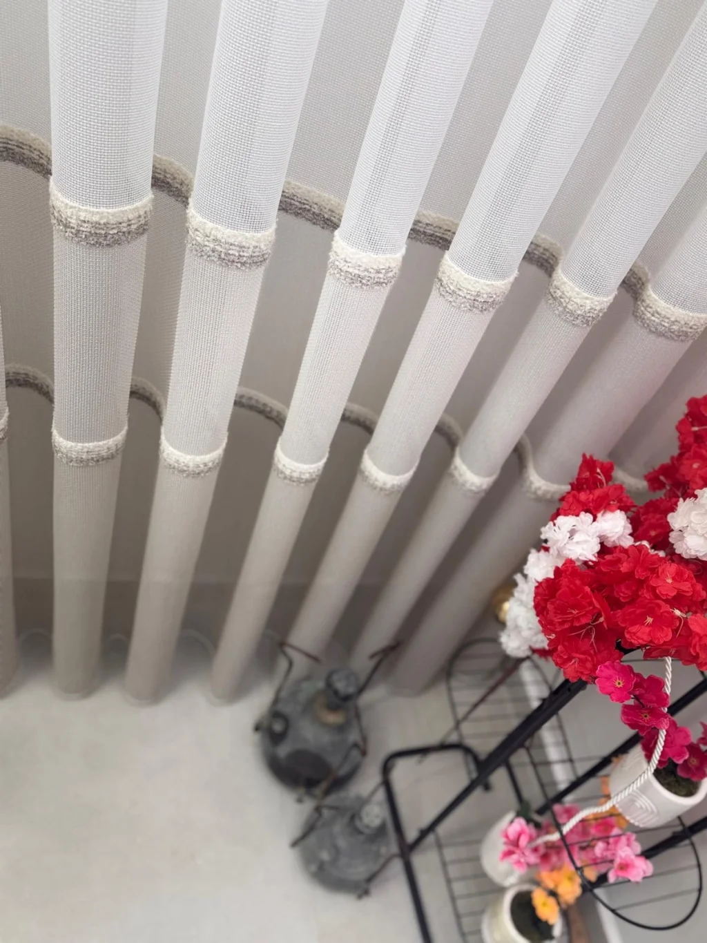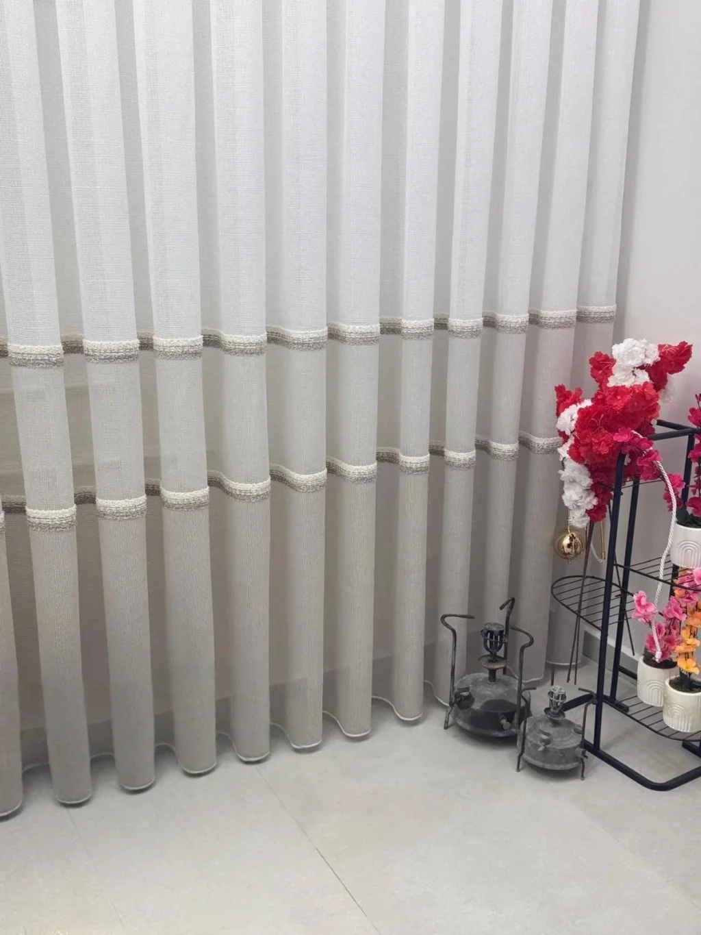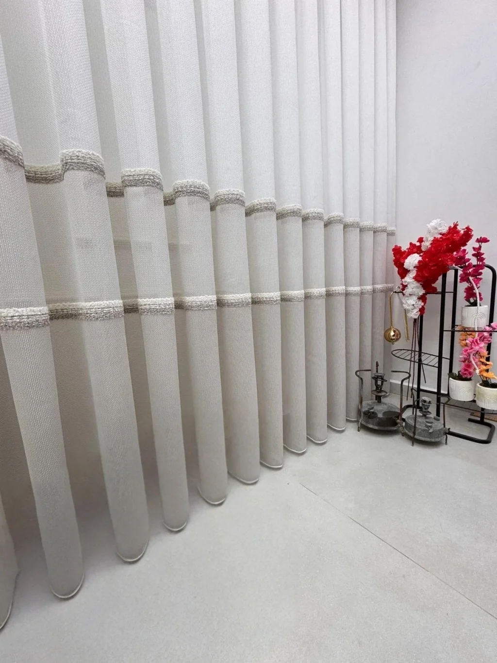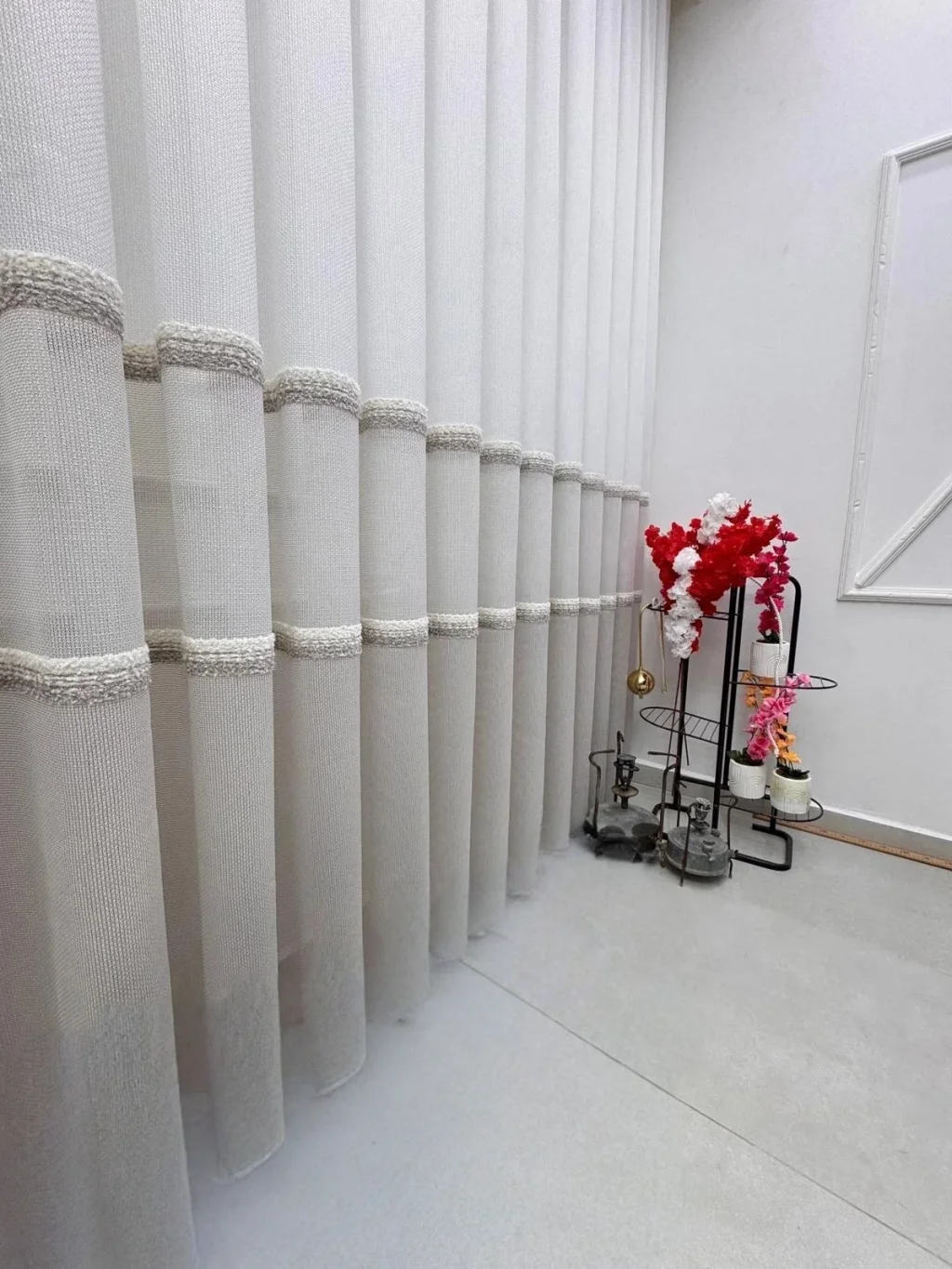 تفاصيل الشريط البارز التي تمتد على طول الستارة تضيف للمنتج حركة وعمقًا، مما يمنحه مظهرًا يتجاوز الستائر العادية بكثير.