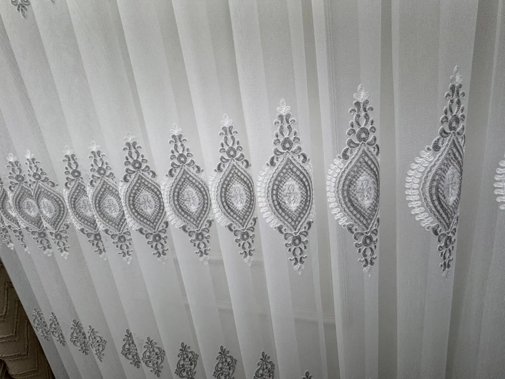 هذا التول الفاخر المصنوع من خيوط الخيزران عالية الجودة يتميز بالملمس الطبيعي القابل للتنفس ويضفي مظهراً أنيقاً بفضل زخارفه الكلاسيكية البديعة.