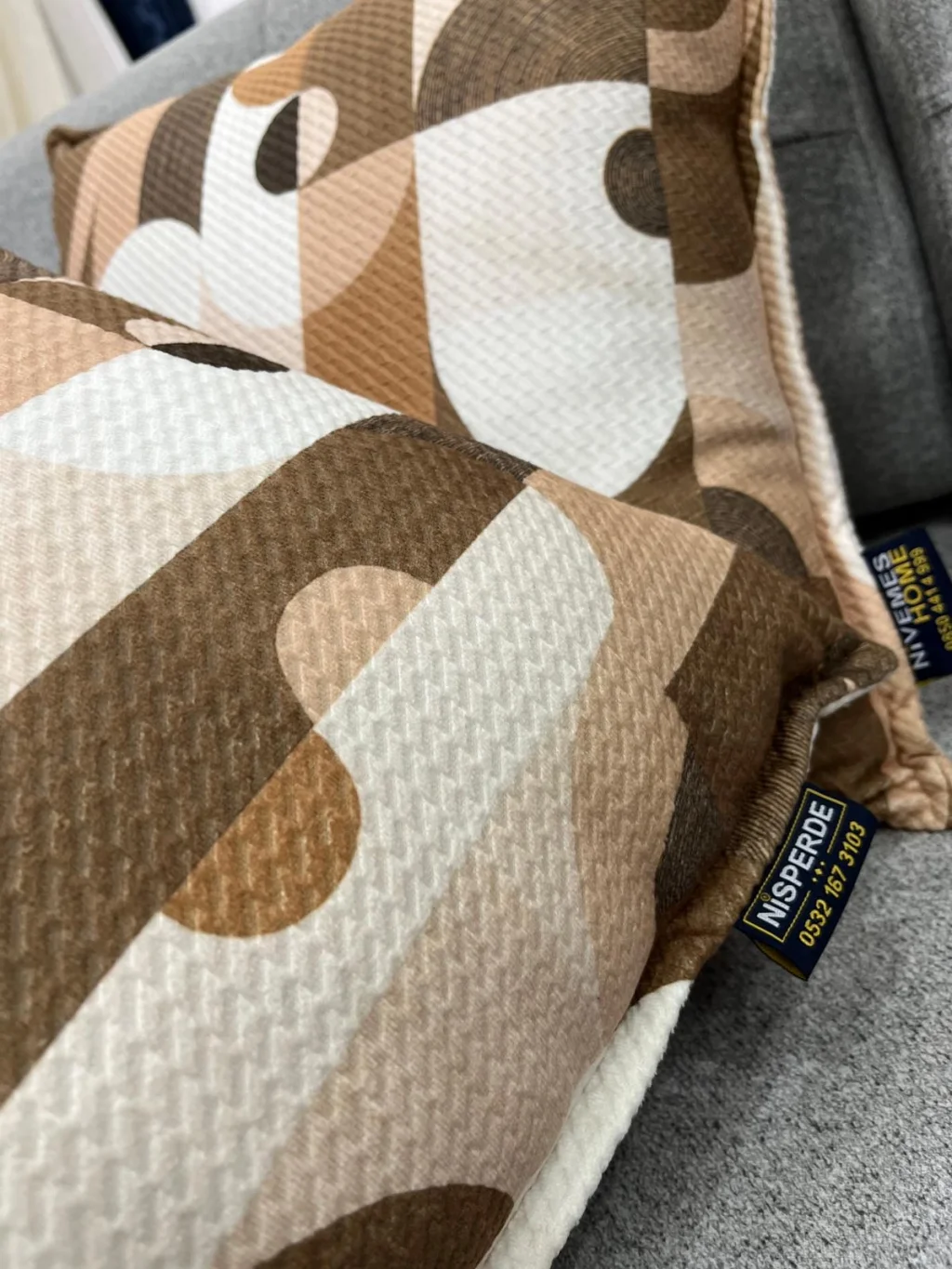 NIVEMESHOME GEOMETRİK BEJ-KAHVE DESENLİ 45X45 DOLGULU KIRLENT KILIFI