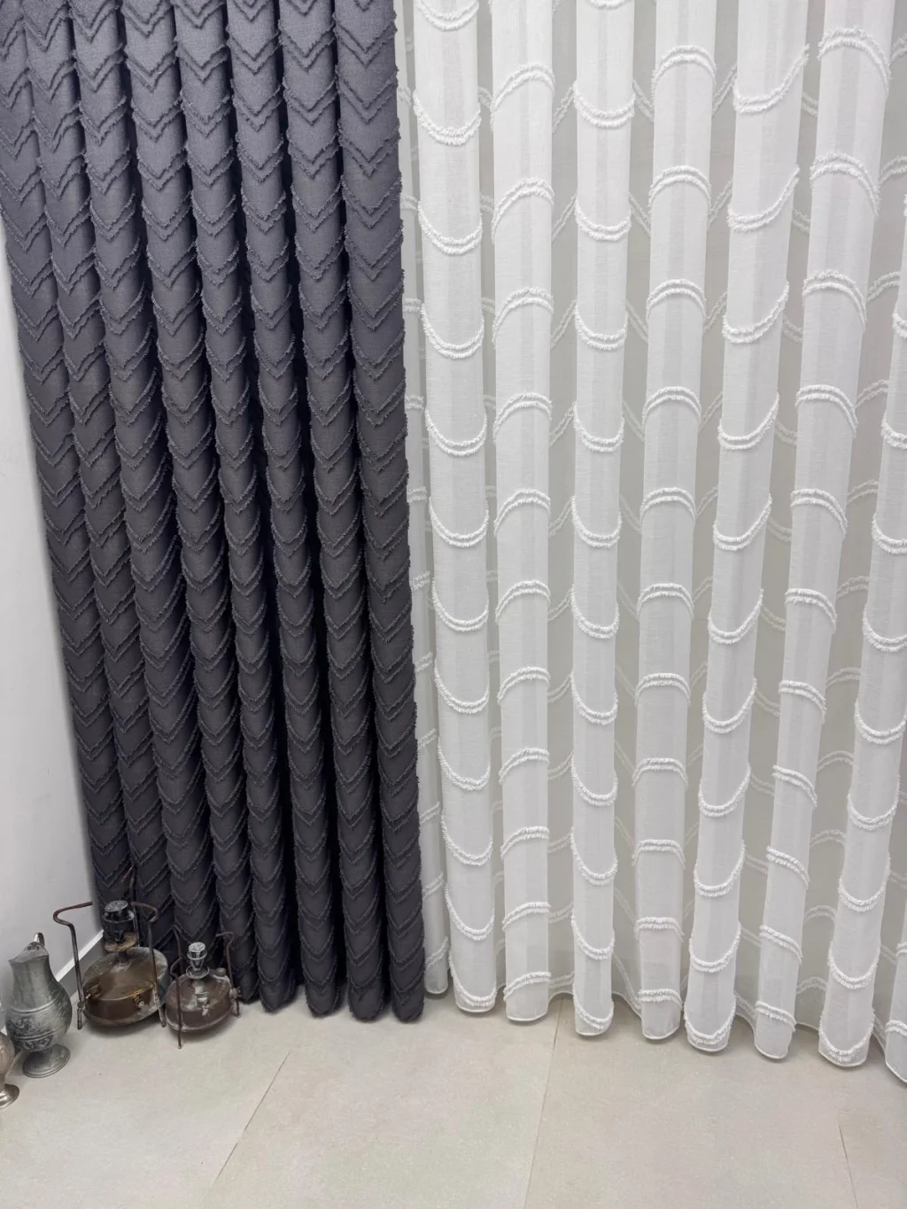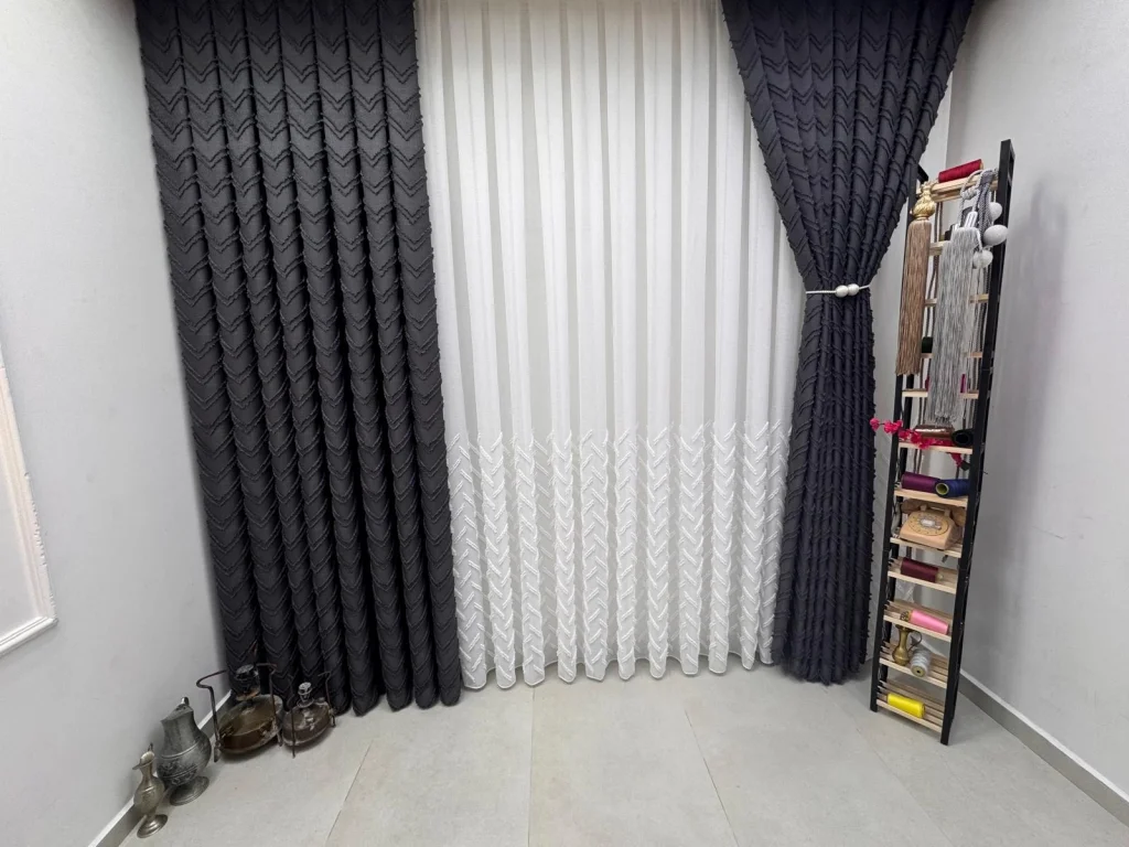 Has 1/3 tight pleats. Our products are prepared by professional tailors in our special sewing workshops. Every piece is carefully packed, ironed, and ready to be mounted on the rail after passing through measurement and quality control.