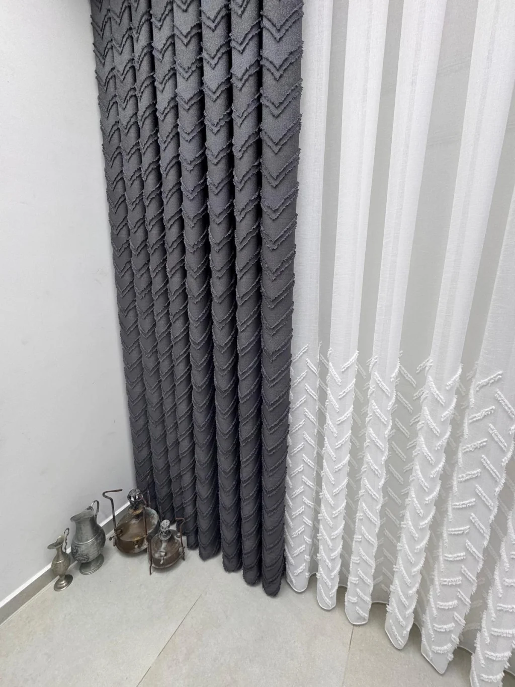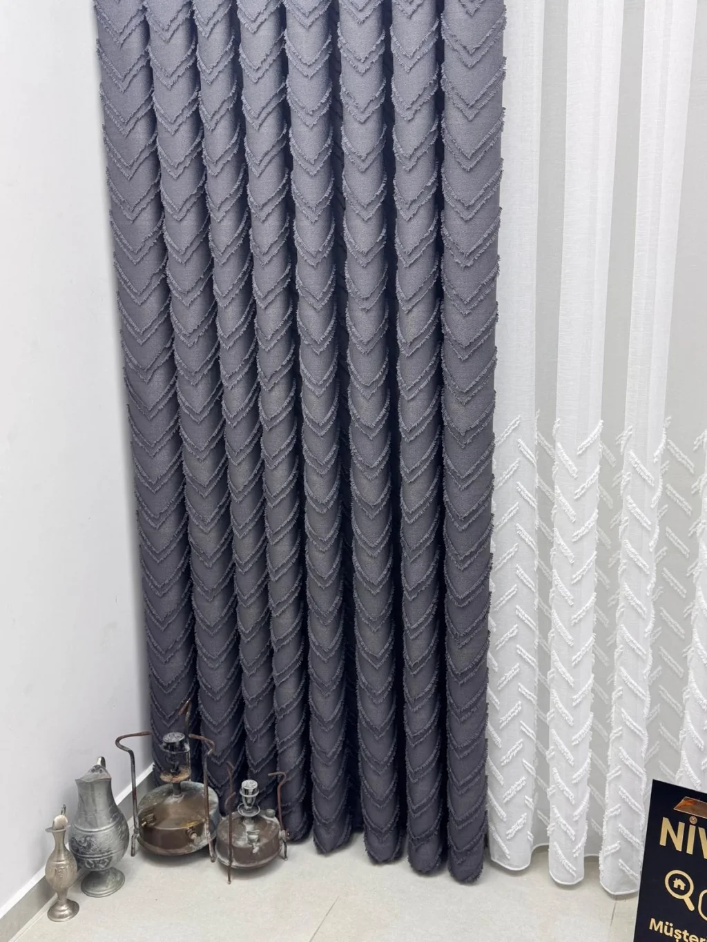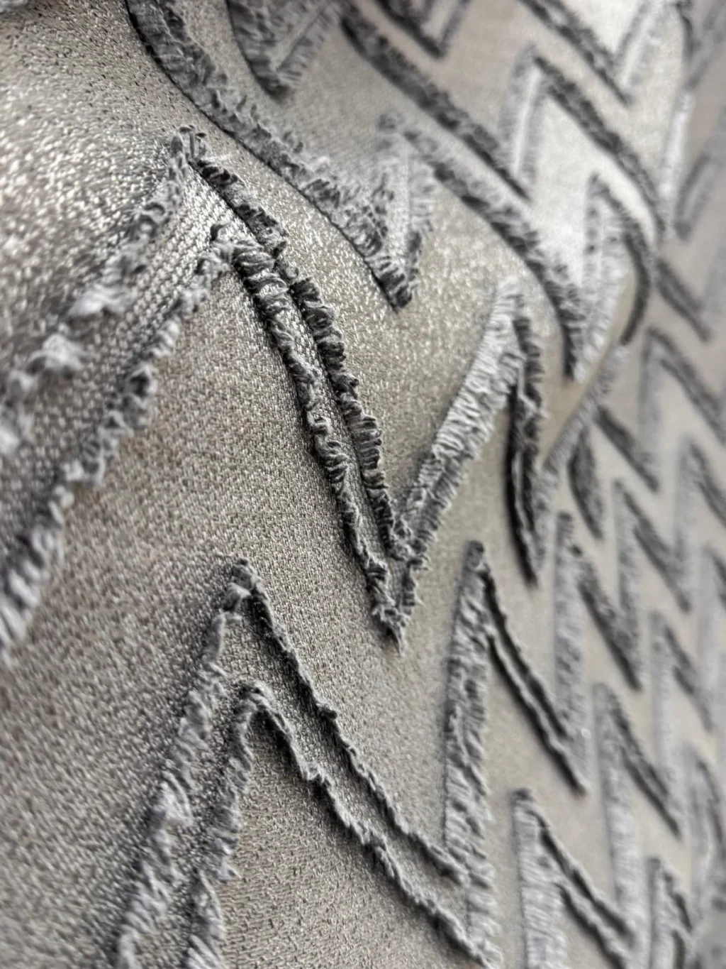 With its unique V-shaped embossed pattern and thick fabric structure, it adds a modern and strong character to your living spaces.