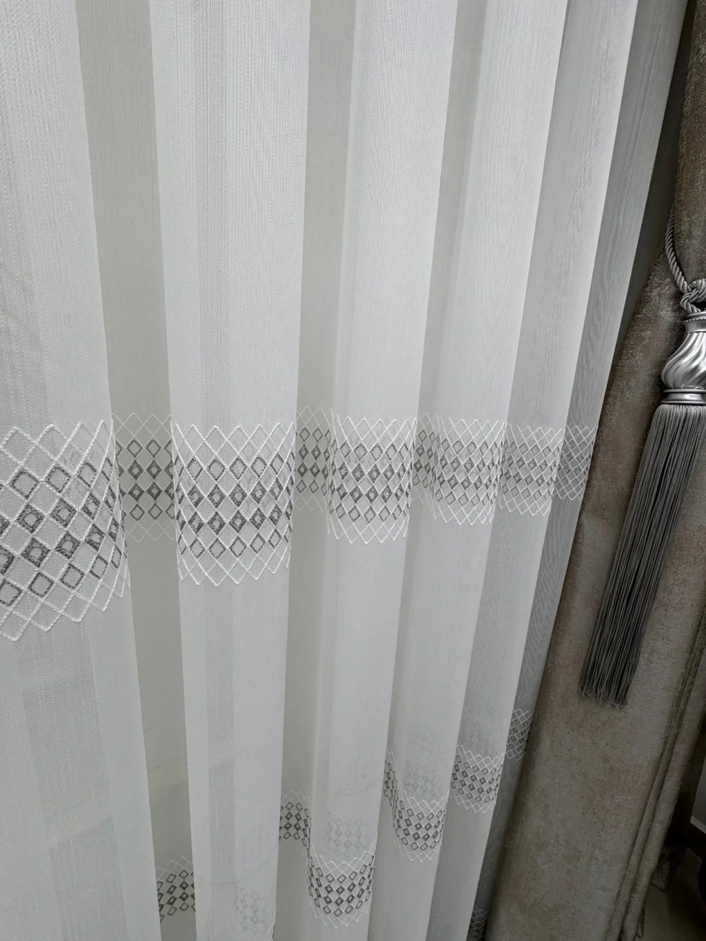 • elegante cortina de tul con diseño de diamantes