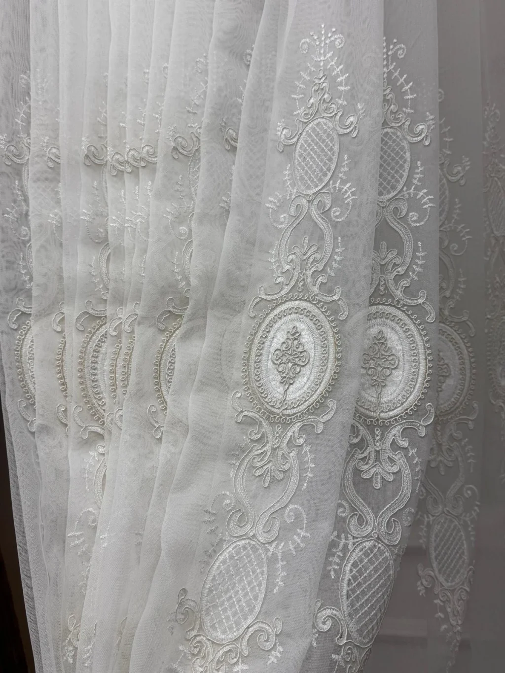 Hazel, que crea un fuerte punto focal en salones y una atmósfera tranquila pero noble en dormitorios, se adapta perfectamente a decoraciones clásicas, vanguardistas y neoclásicas. Es una cortina de tul diseñada para quienes aman el esplendor sin exageración, y mantiene su moda durante muchos años.