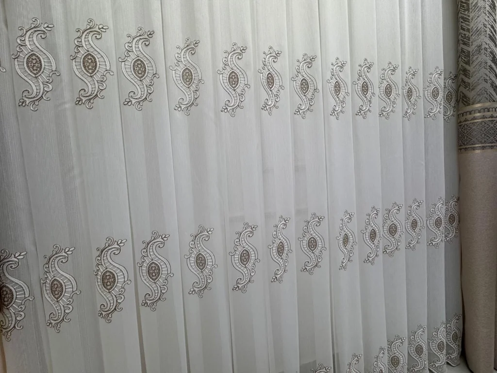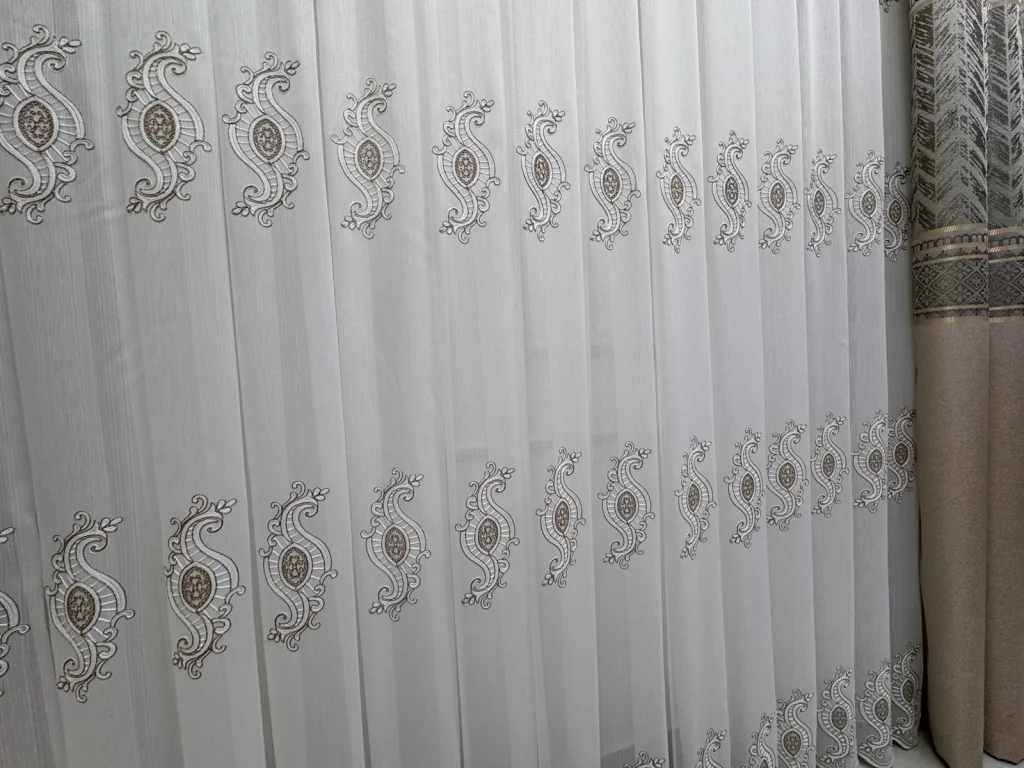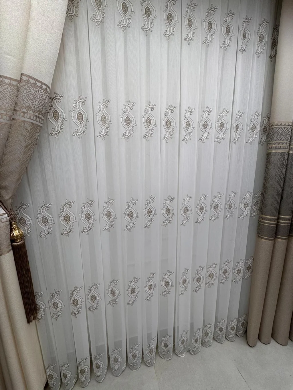 La Cortina Royal de Tül aporta una elegancia distinguida a tus espacios vitales con sus detalles de bordado elegantes y su porte noble. Gracias a su tejido de tül fino y de alta calidad, permite que la luz del día entre suavemente creando un ambiente fresco. Sus motivos meticulosamente trabajados son la combinación perfecta para decoraciones clásicas y modernas. Es una opción ideal para el salón, la sala de estar y los dormitorios.