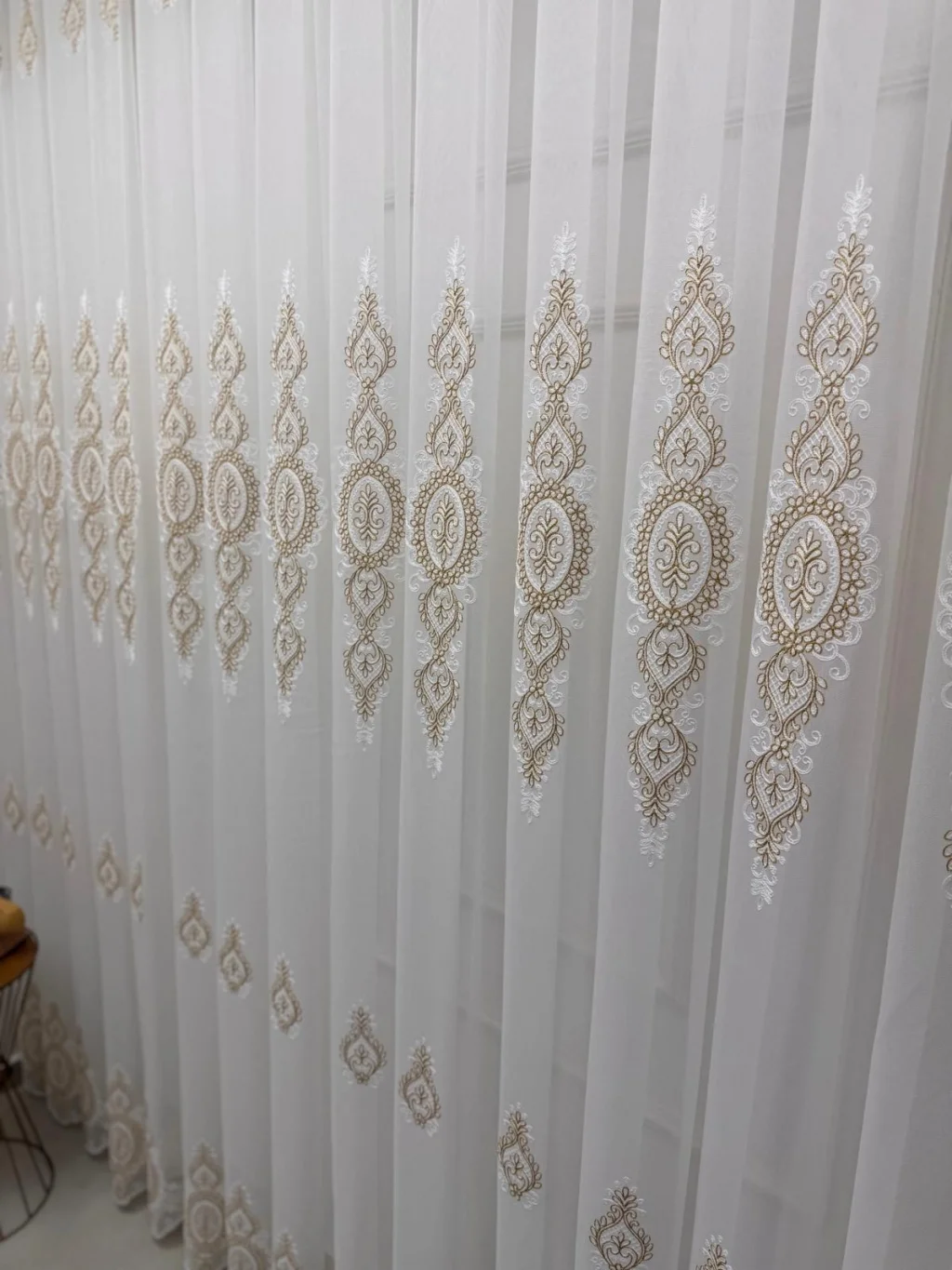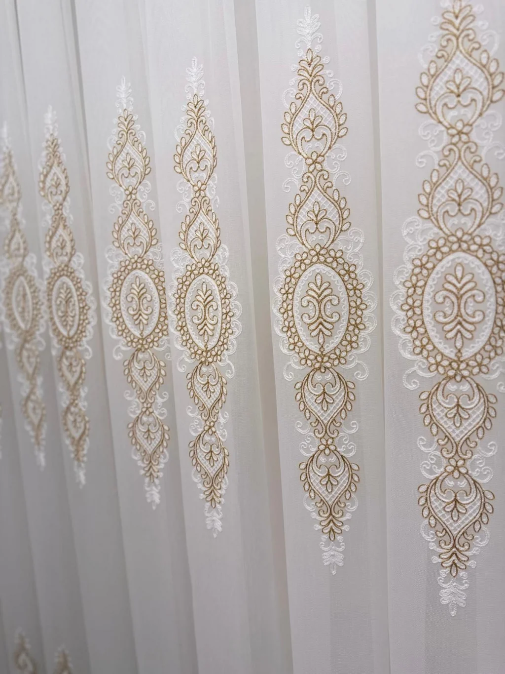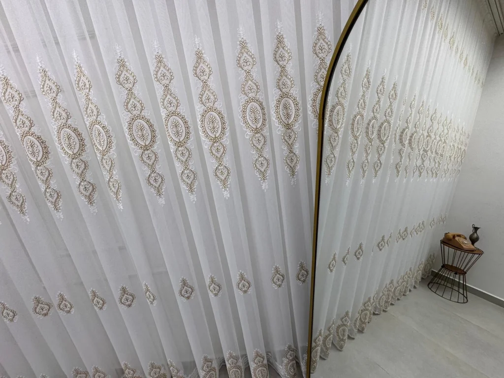 En cada pliegue, sentirá la calidad de Yaren Gold Tül, llevando su hogar un paso adelante.