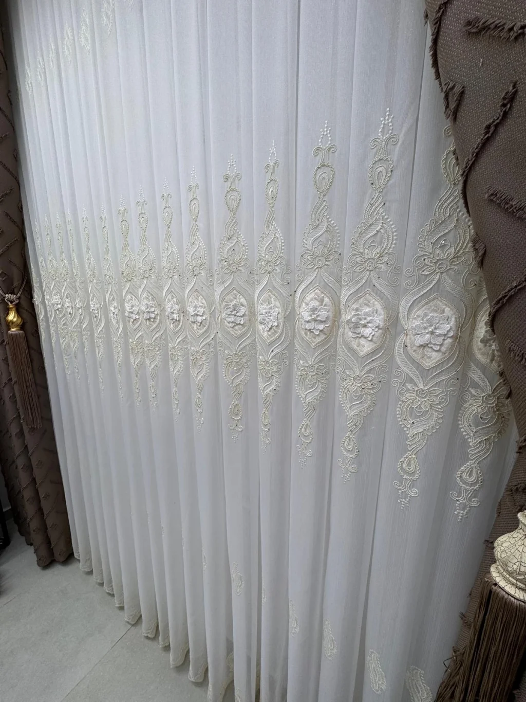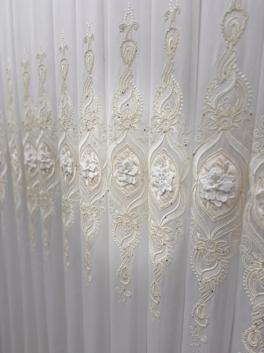 La Cansel Gold Tenda Velo, che aggiungerà un'eleganza senza tempo alla tua casa, dona un'atmosfera nobile agli ambienti con la sua texture dorata e il dettaglio delle perle. La nostra tenda di tulle, che offre una brillantezza mozzafiato con i suoi ricami eleganti, presenta lusso ed estetica insieme con la sua texture speciale che brilla in toni dorati leggeri secondo l'angolo di incidenza della luce. Prodotto originale NİVEMESHOME - Colore: crema brillante dorato - Motivo: raffinato ricamo classico con dettaglio di perle - Aspetto: aspetto ordinato ed estetico grazie al bordo inferiore ponderato - Lavabile a 30 gradi, può essere appesa senza necessità di stiratura mentre è ancora umida, con piega 1/2,5. - I nostri prodotti sono preparati in laboratori di sartoria specializzati da sarti professionisti. Ogni pezzo viene meticolosamente confezionato, stirato e pronto per il montaggio su binario dopo essere passato attraverso il controllo dimensionale e di qualità. - Nelle misure del pannello, la prima misura è la larghezza, la seconda misura è l'altezza. "ogni dettaglio con lucentezza di perla, nobiltà dorata nel velo"