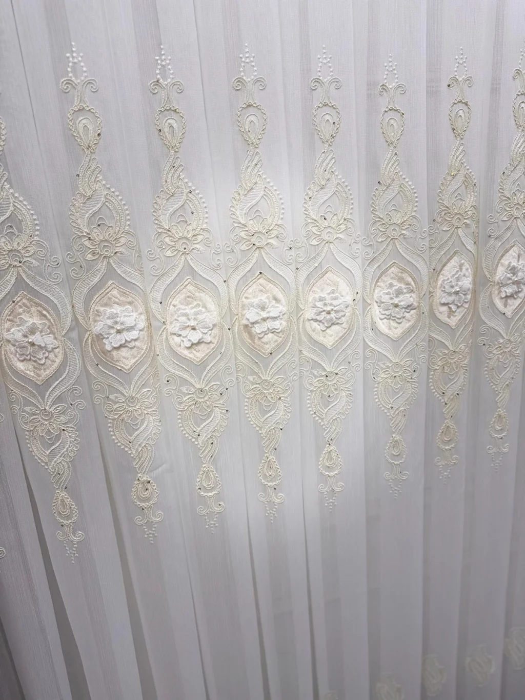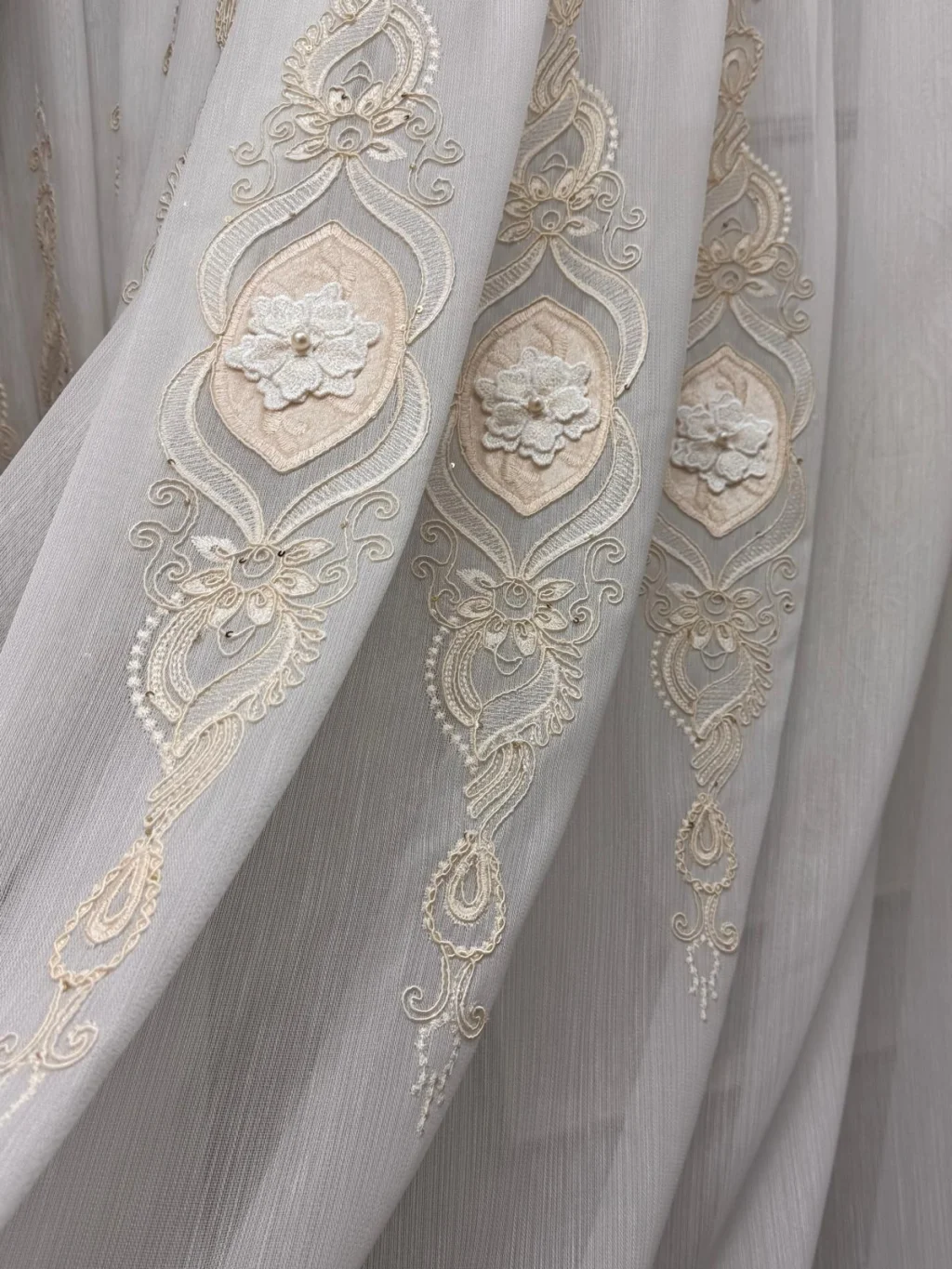- Motivo: ricamata classica ed elegante con dettagli di perle