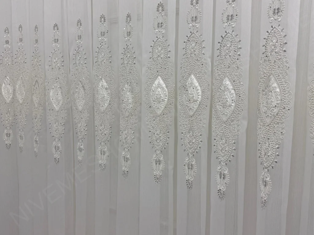 Elisya Tenda di Tulle di Bambù Luccicante che aggiungerà eleganza e modernità alla tua casa, offre un aspetto drappeggiato con la pesantezza della trama del bambù, mentre i dettagli luccicanti donano un tocco di lusso al tuo ambiente.