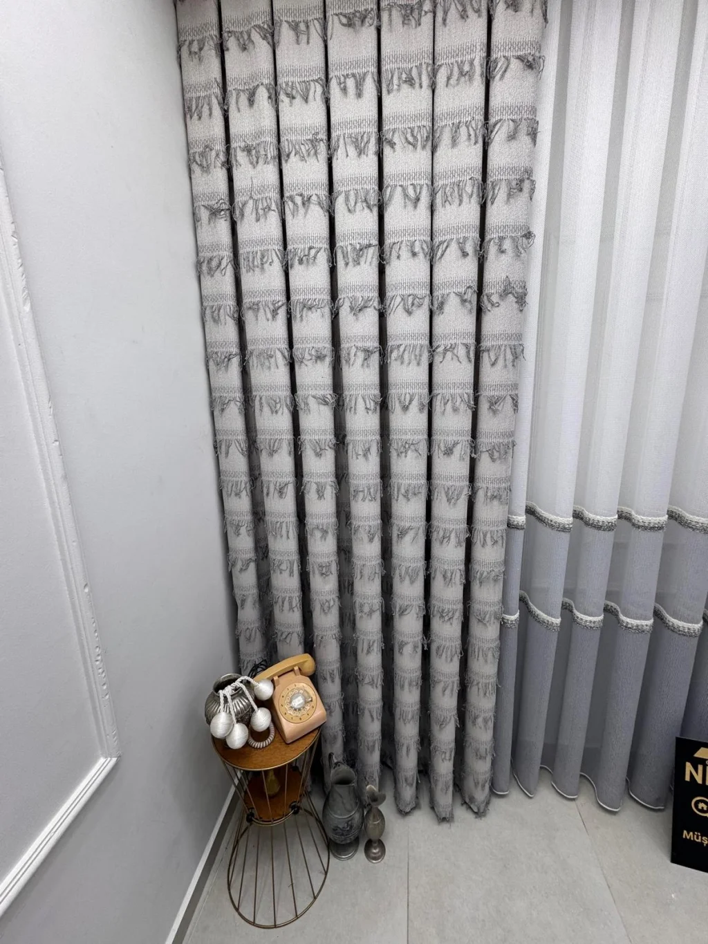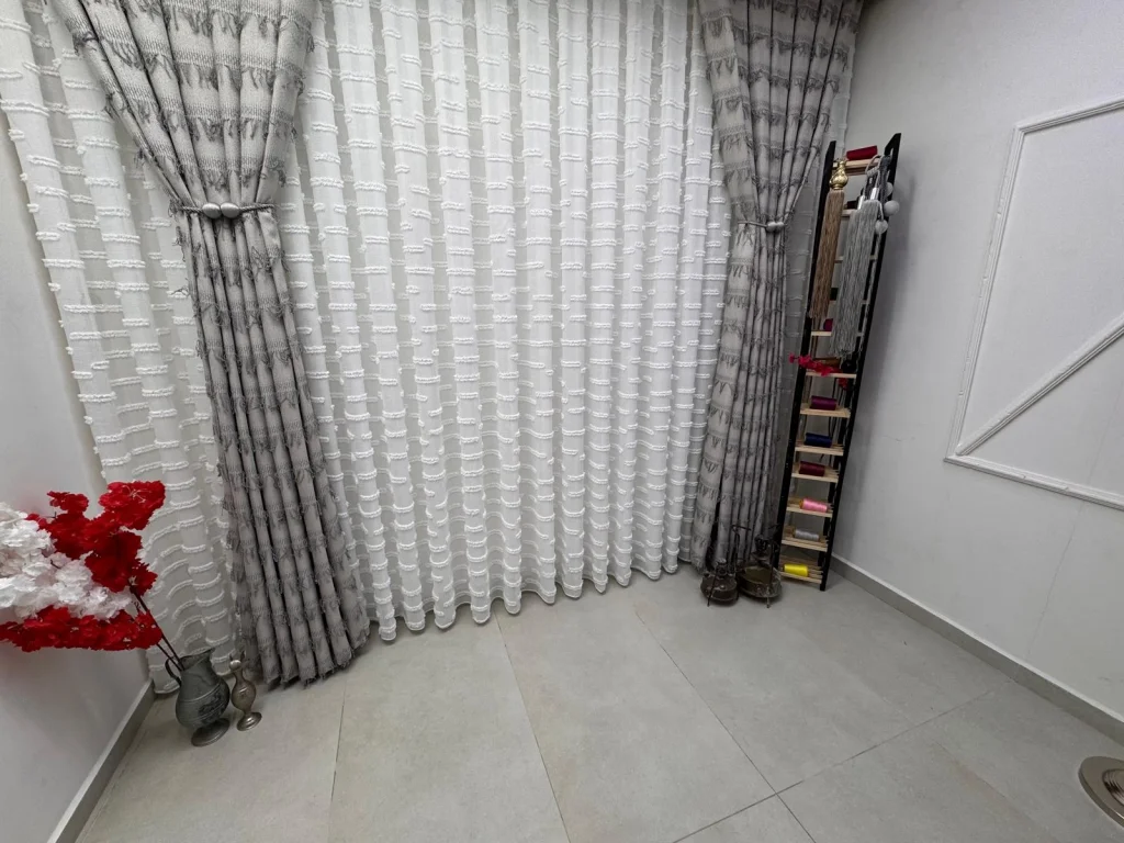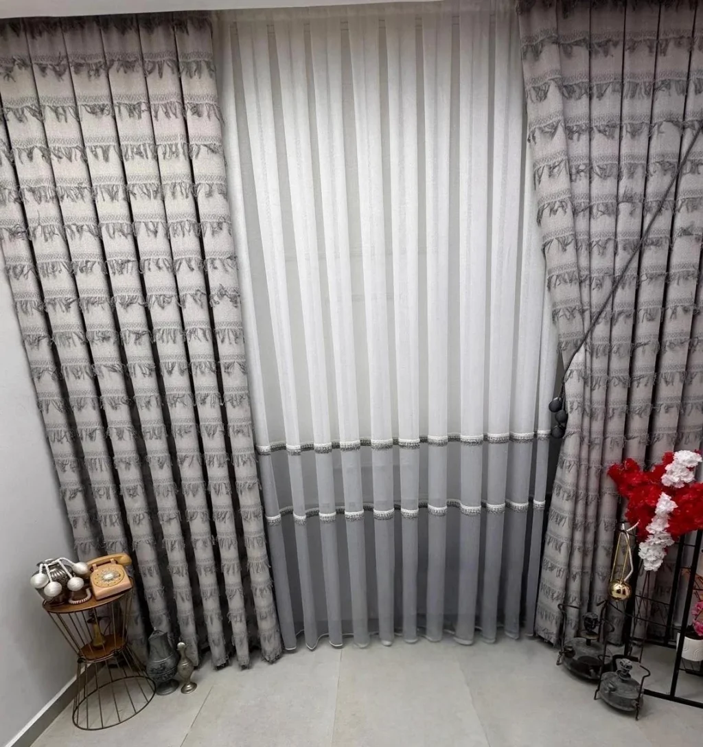 Ha pieghe dense 1/3. I nostri prodotti sono preparati da sarti professionisti nei nostri laboratori di sartoria specializzati. Ogni pezzo viene controllato in misura e qualità prima di essere stirato e confezionato con cura, pronto per essere fissato al binario.