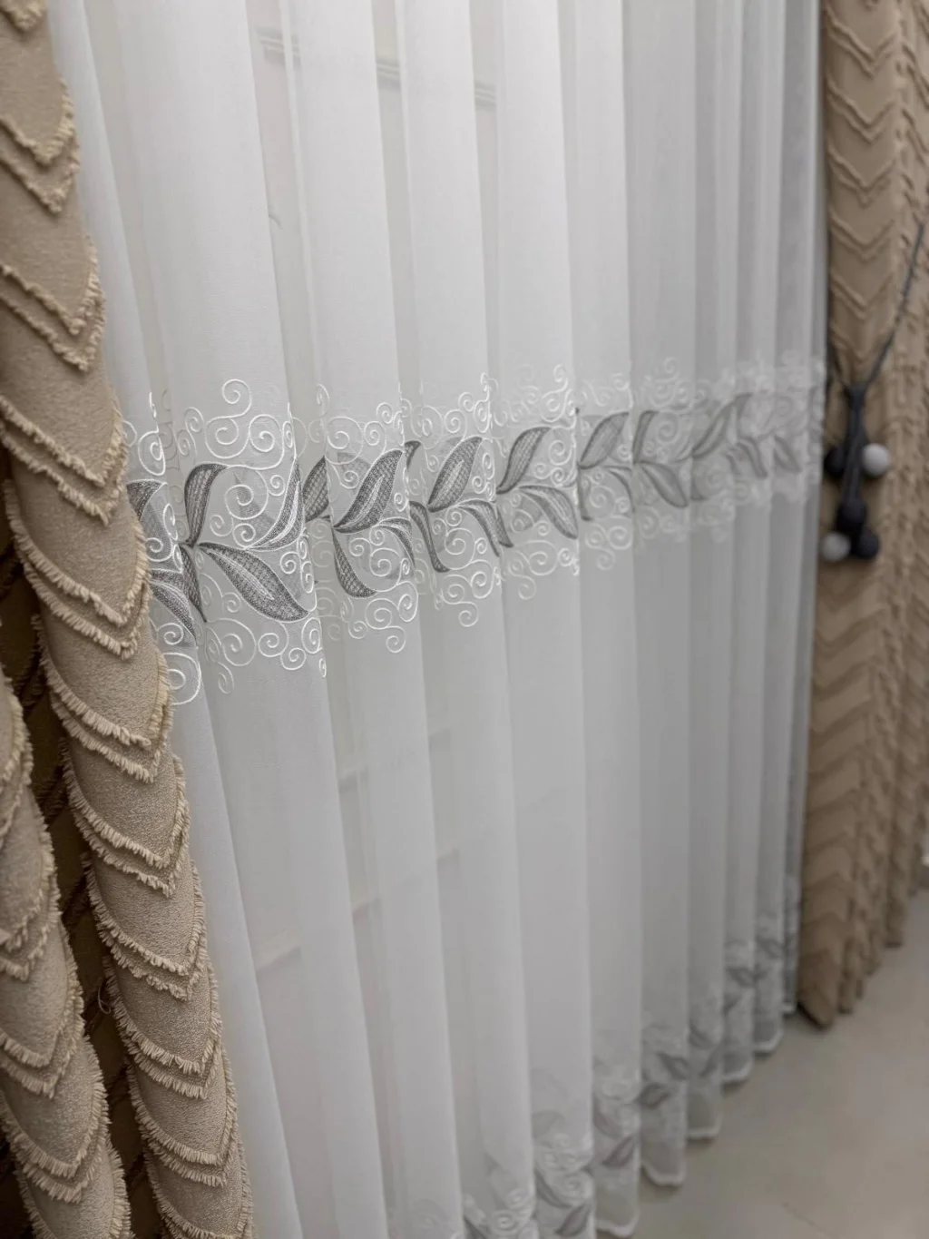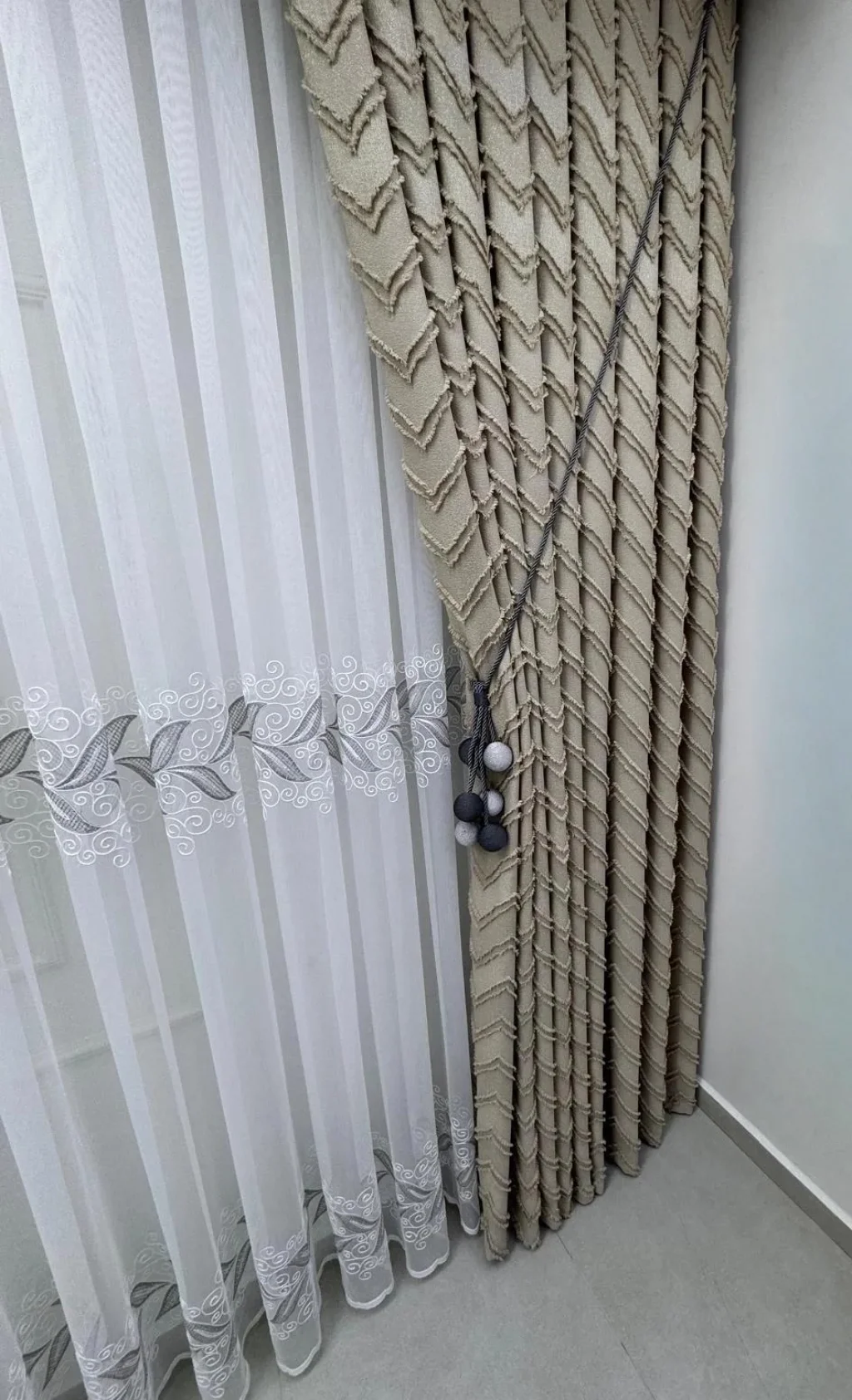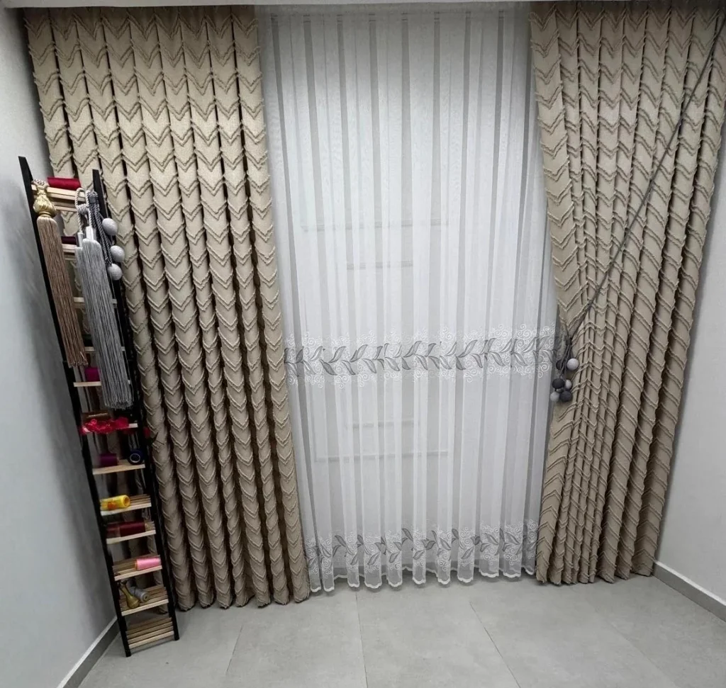 1/3 sık pilelidir.Ürünlerimiz özel dikim atölyelerimizde profesyonel terziler tarafından hazırlanır. Her parça, ölçü ve kalite kontrolünden geçtikten sonra ütülü ve kornişe takılmaya hazır olarak özenle paketlenir.