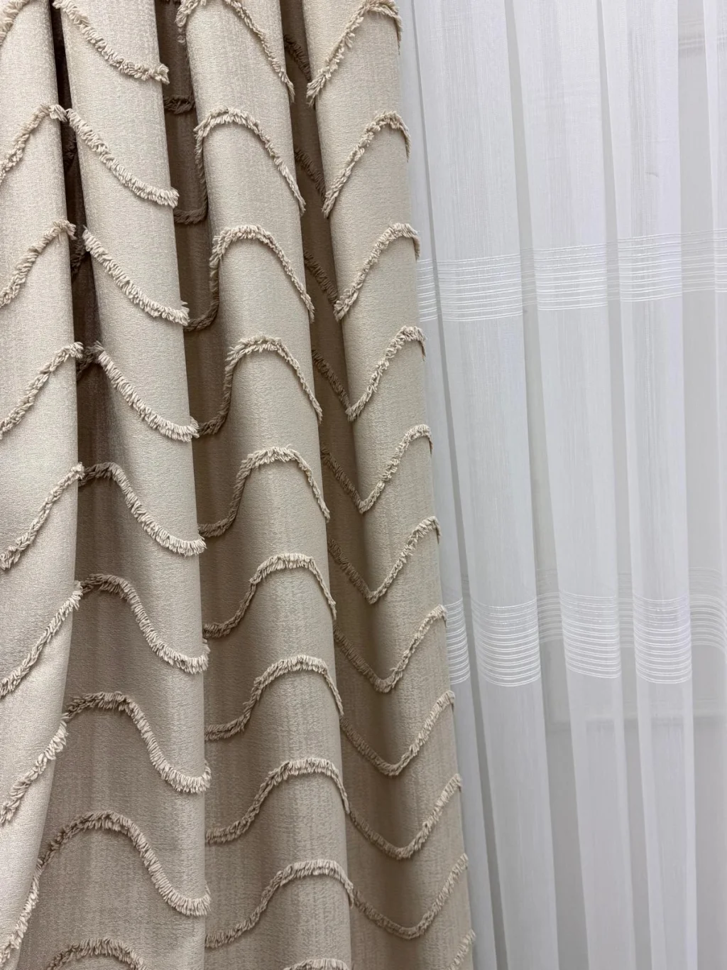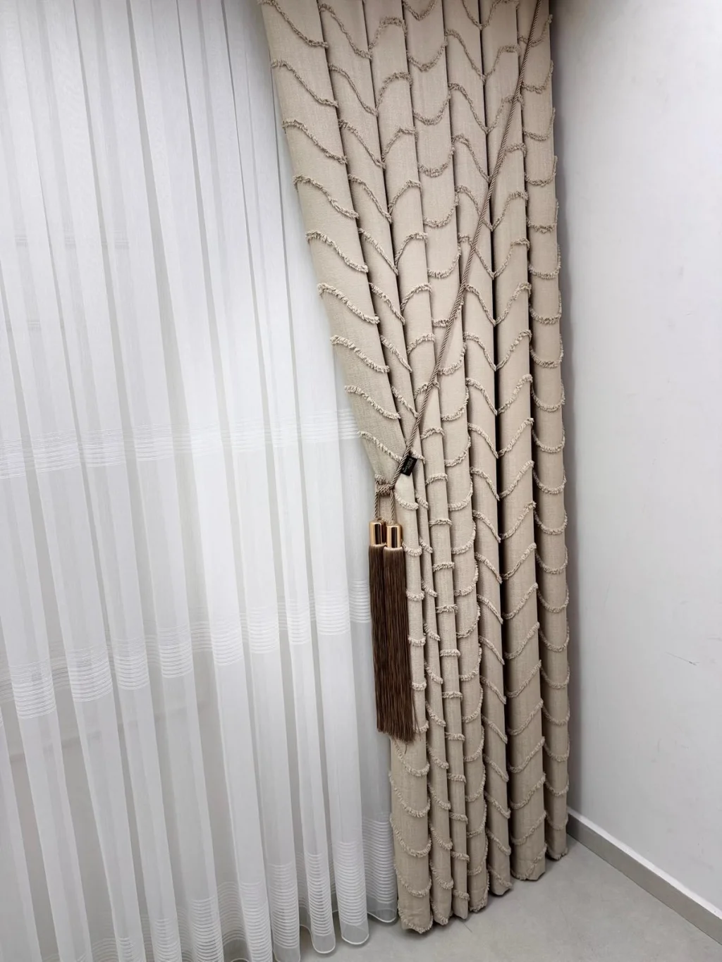 1/3 sık pilelidir.Ürünlerimiz özel dikim atölyelerimizde profesyonel terziler tarafından hazırlanır. Her parça, ölçü ve kalite kontrolünden geçtikten sonra ütülü ve kornişe takılmaya hazır olarak özenle paketlenir.panel ölçülerinde ilk ölçü en ,ikinci ölçü boy ölçüsüdür .Ürüne hiçbir aksesuar dahil değildir.