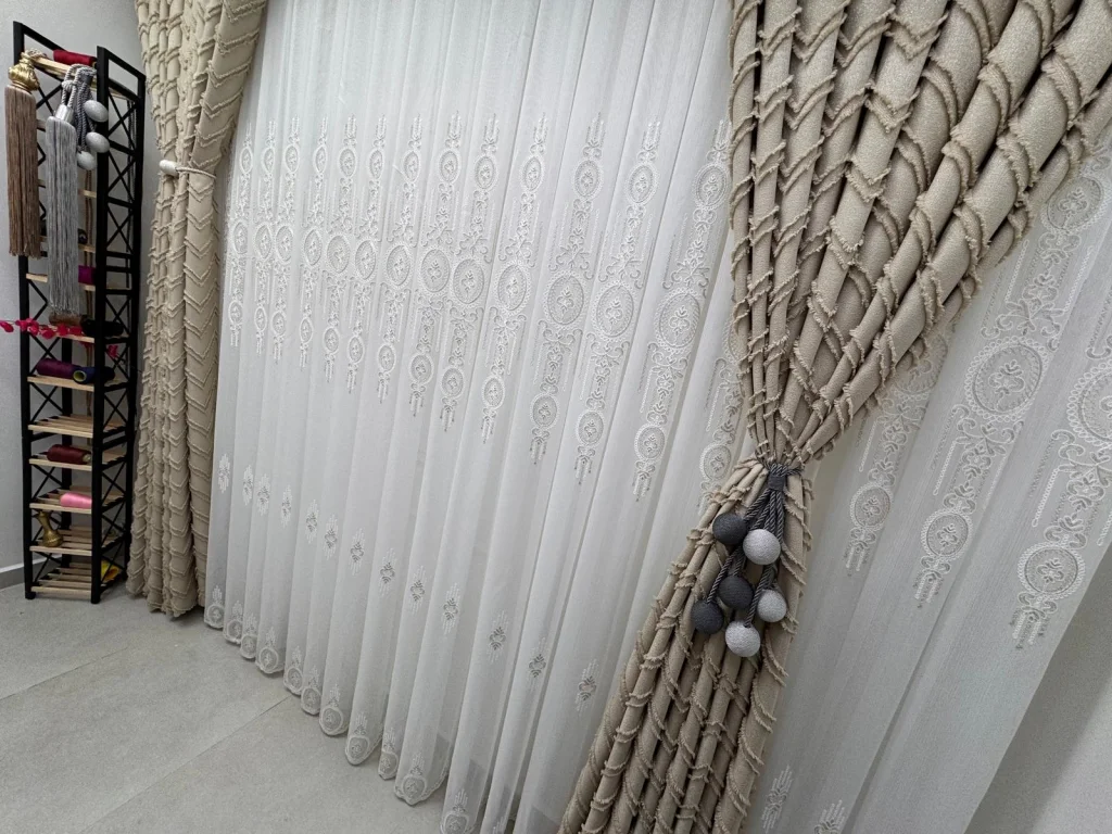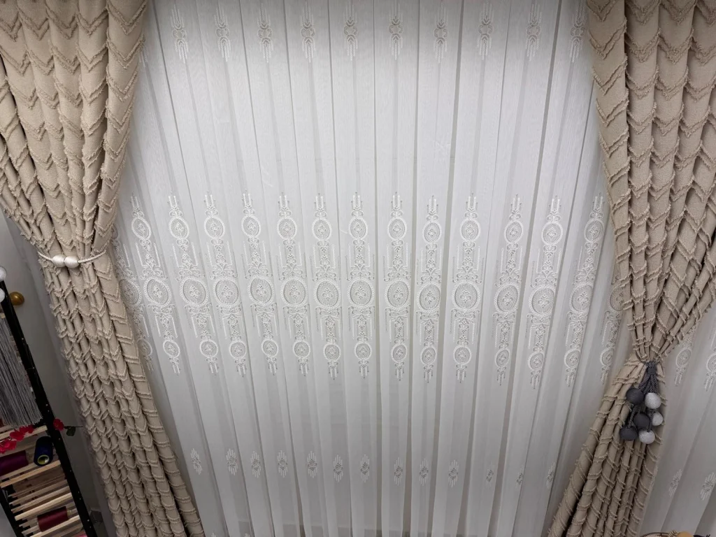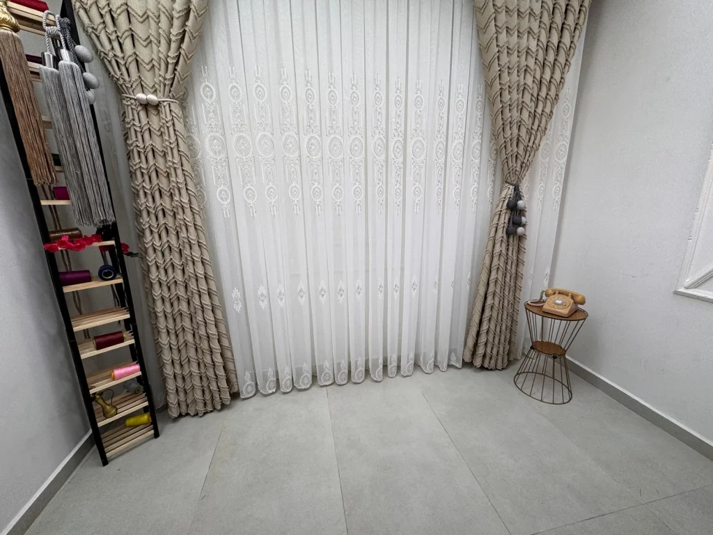 1/3 sık pilelidir.Ürünlerimiz özel dikim atölyelerimizde profesyonel terziler tarafından hazırlanır. Her parça, ölçü ve kalite kontrolünden geçtikten sonra ütülü ve kornişe takılmaya hazır olarak özenle paketlenir.