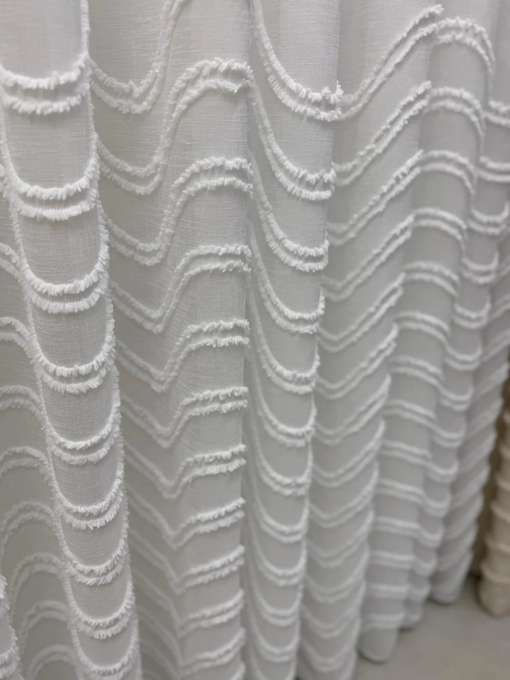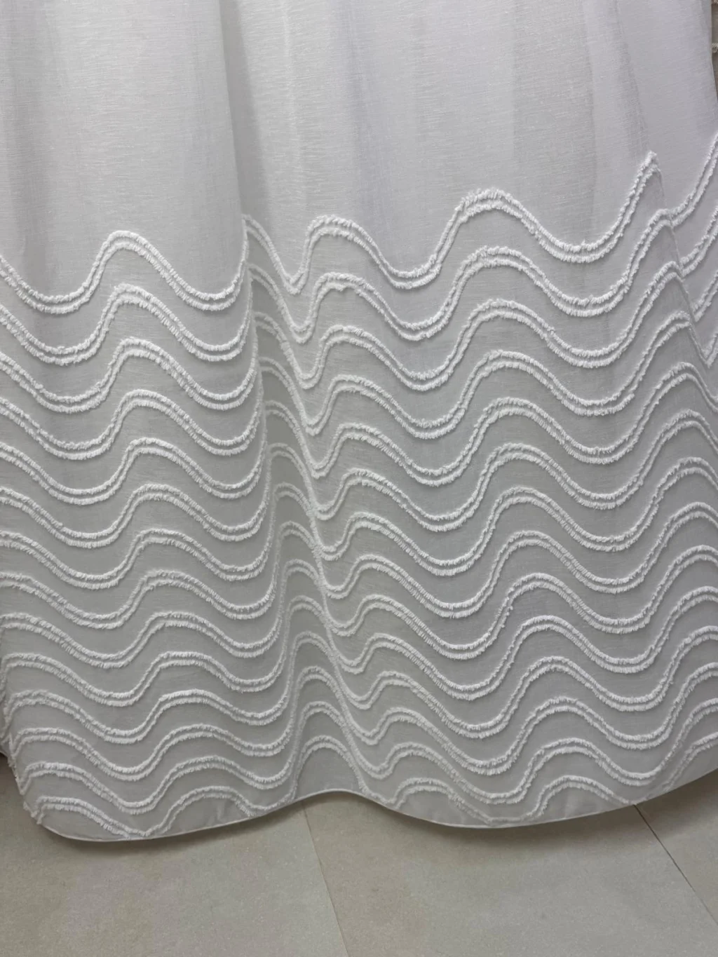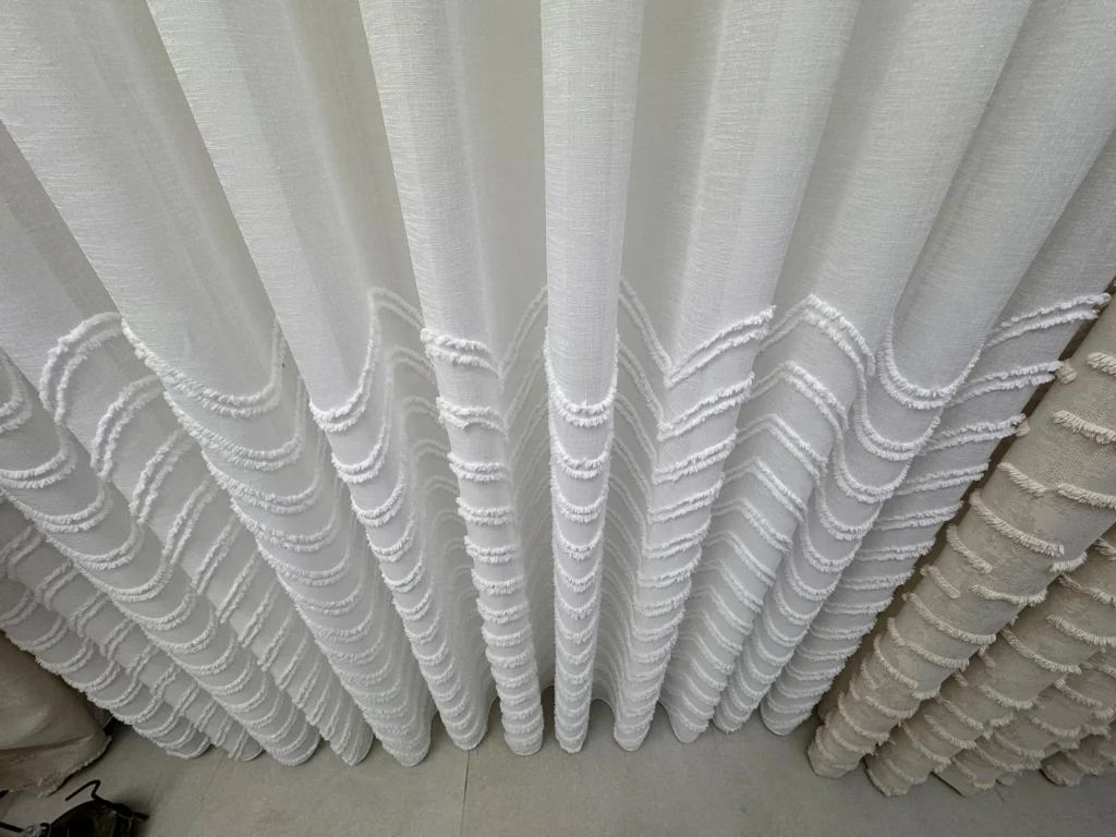 Тюльный занавес, оформленный современными волновыми узорами, добавит элегантности и свежести в ваше жилое пространство. Благодаря своей светопроницаемой структуре он идеально подходит для использования в гостиной, спальне и на балконе, лаская утренний свет своей декоративной привлекательностью.