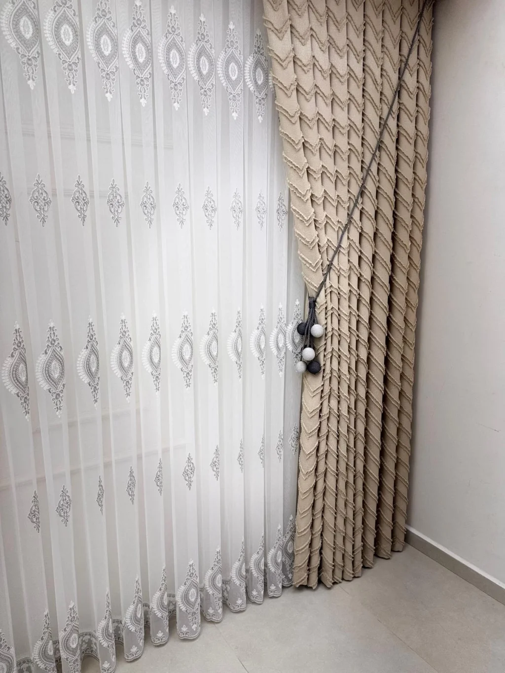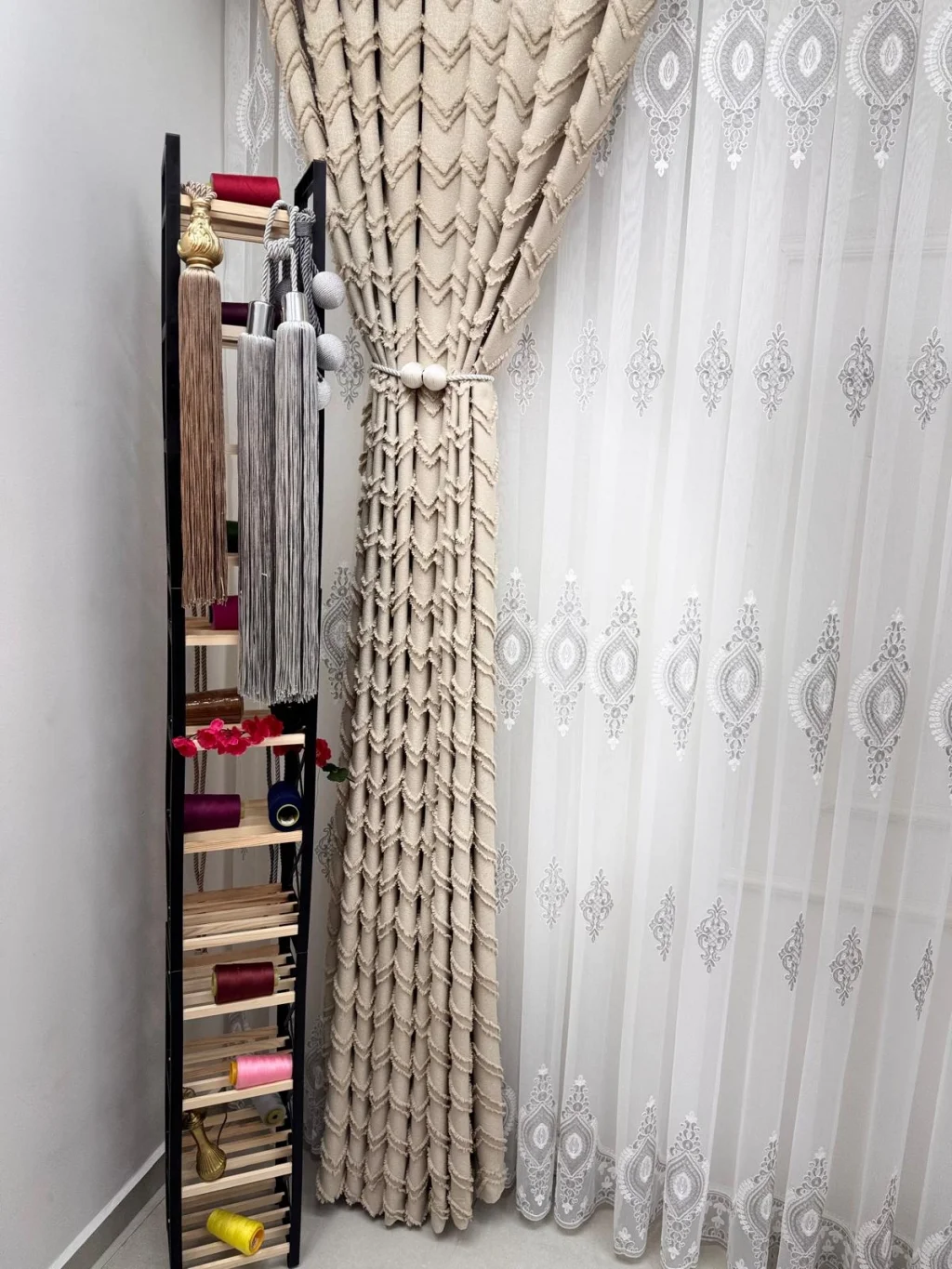 1/3 плотная складка. Наши изделия изготавливаются в наших специальных швейных мастерских профессиональными портными. Каждая деталь проходит измерение и контроль качества, после чего утюжится и аккуратно упаковывается, готовая для крепления на карниз.