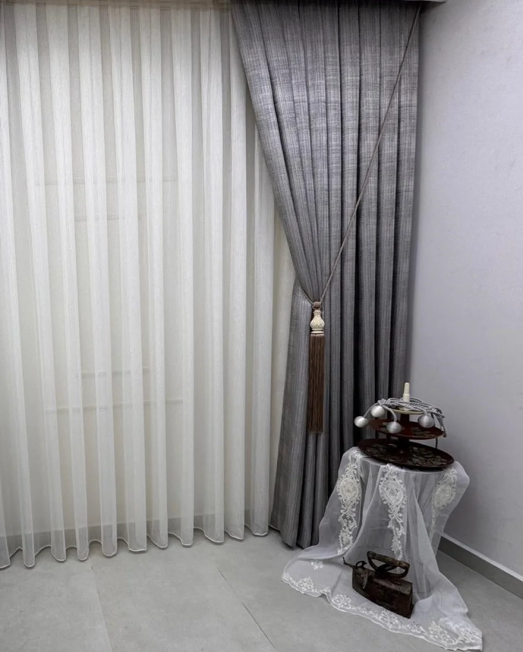 1/3 sık pilelidir.Ürünlerimiz  özel dikim atölyelerimizde  profesyonel terziler tarafından hazırlanır. Her parça, ölçü ve kalite kontrolünden geçtikten sonra ütülü ve kornişe takılmaya hazır olarak özenle paketlenir.